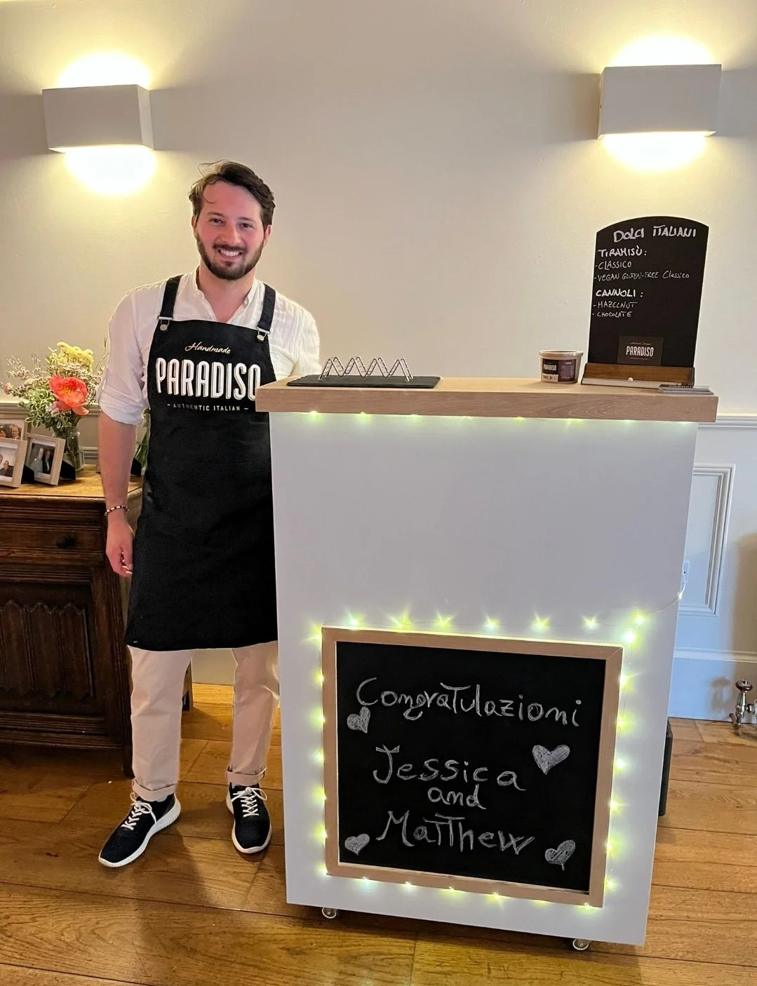 A staffed dessert bar, for a two-hour service, serving pre-ordered quantities of tiramisù and/or cannoli in different flavours.